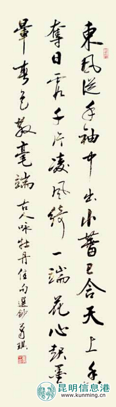 漢族,1969 年生?,F為昆明書法家協會副秘書長、昆明作家協會會員、云南省詩詞學會會員、中國青年書畫家協會學術委員。閑暇弄翰,醉心于點線律動之美,體驗有限中創(chuàng)造無限、具象中表現抽象那種放浪形骸的書寫心境,不亦樂乎。
