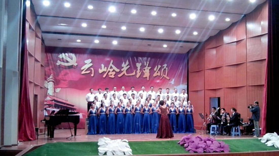 呈貢區(qū)慶祝中華人民共和國(guó)65周年華誕暨“云嶺先鋒頌”歌唱比賽現(xiàn)場(chǎng)。記者鄒美連/攝