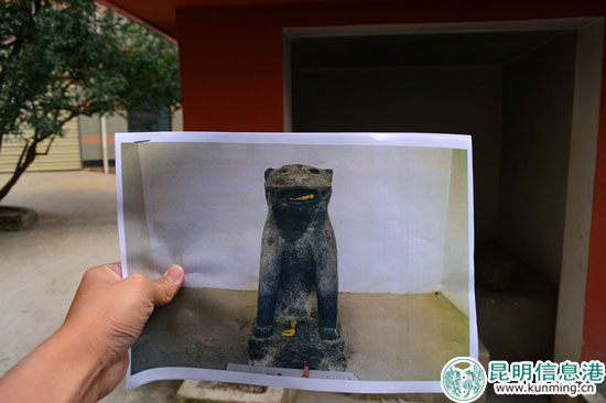 被盜石像的照片 。實習記者張昊哲/攝