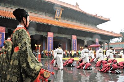 ????昨日,孔子故里山東曲阜孔廟舉行祭孔大典,祭祀人員在祭拜孔子像。當日是偉大的思想家、教育家、哲學家、儒家學派的創(chuàng)始人孔子誕辰2565周年紀念日,全國多地舉行隆重的祭孔大典,各界人士參與祭拜。