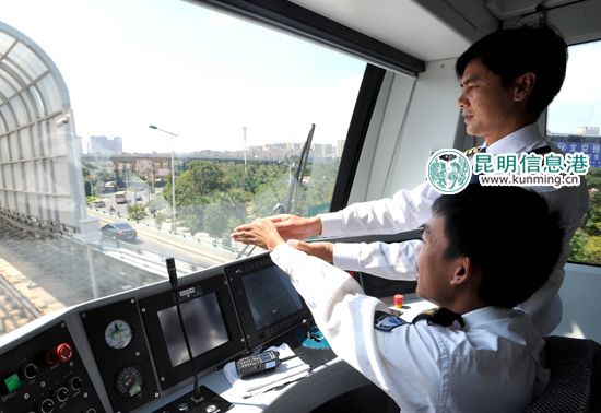 ????比城市醒得早的人凌晨4點的昆明,有的人正在通宵看著電影,有的人剛剛吃完夜宵準備睡下,有的人卻要睜開朦朧的睡眼準備起床工作了。凌晨5點,大梨園車輛段的早班司機起床了,從檢車、申請送電、靜調(diào)、儀器測試等開始,接下來他們要做的就是等待駕駛室前方的信號燈亮起然后發(fā)動列車。6點8分,第一輛列車駛出。從這一刻開始,地鐵司機只能在列車到站后才能在地面上做短暫的停留,看著列車吐出又吞入成批的乘客,然后后關(guān)上車門,到下一站繼續(xù)著同樣的程序。 3平方的司機室內(nèi),近百個開關(guān)按鈕,司機坐在駕駛位上,眼望前方,右手放在操作柄上,左手斜指前方,口中念著“報站信息正確”、“雙門關(guān)閉良好,無夾人夾物”,這是司機正在進行手指呼喚動作,這樣“自言自語”的行為,他們每天要重復(fù)2000多遍。以1、2號線為例,每名輪班司機每天將行駛206公里,工作480分鐘。