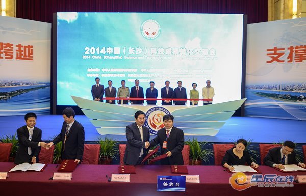 ??? 今日(10月23日)上午,2014第八屆中國(guó)(長(zhǎng)沙)科技成果轉(zhuǎn)化交易會(huì)在長(zhǎng)沙舉行啟動(dòng)儀式,啟動(dòng)儀式現(xiàn)場(chǎng)12個(gè)重大項(xiàng)目成功簽約。