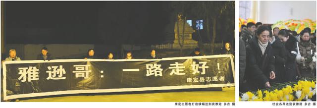 ????“苦難從不會(huì)擊倒康巴兒女,我們就這樣直面生死之痛?!?2月1日清晨,在康定殯儀館外,“雅遜哥一路走好”的標(biāo)語(yǔ)沉痛凝重。無(wú)數(shù)認(rèn)識(shí)或者不認(rèn)識(shí)的人排起長(zhǎng)龍,手捧鮮花,在烈烈寒風(fēng)中肅穆靜立。