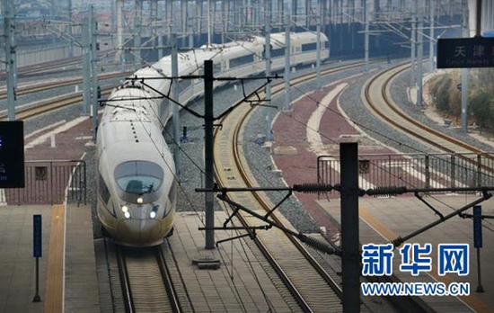 ? 12月9日,由寧波開往沈陽北的G1221次高鐵列車駛?cè)胩旖蛘尽W?014年12月10日零時起,全國鐵路將實施新的列車運行圖,這是自今年7月1日調(diào)圖后,中國鐵路總公司對列車運行圖進行的又一次較大調(diào)整。 新華社發(fā) 楊寶森/攝