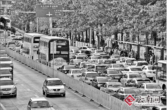 ????青年路作為昆明南北向交通的主干道,剛好穿過(guò)主城的商業(yè)核心區(qū),平日里車(chē)流和人流都很大,擁堵已司空見(jiàn)慣,如果遇到交通事故,能把你堵到?jīng)]脾氣。因?yàn)橐锥萝?chē),許多出租車(chē)司機(jī)都不愿輕易經(jīng)過(guò)青年路,“十次過(guò)來(lái)九次堵”,有出租車(chē)司機(jī)戲稱(chēng),一到節(jié)假日,這里能從早高峰一直堵到晚高峰。
