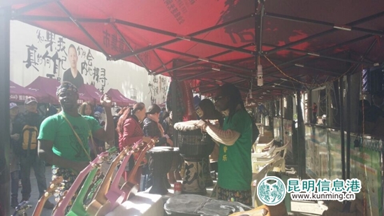 非洲鼓樂(lè)吸引了大批游人