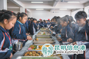????中午時(shí)分,學(xué)生們在食堂打飯,今天這一頓是自助餐。中緬雙方提供的每人每月700元生活費(fèi),讓這些孩子的留學(xué)之路基本無后顧之憂