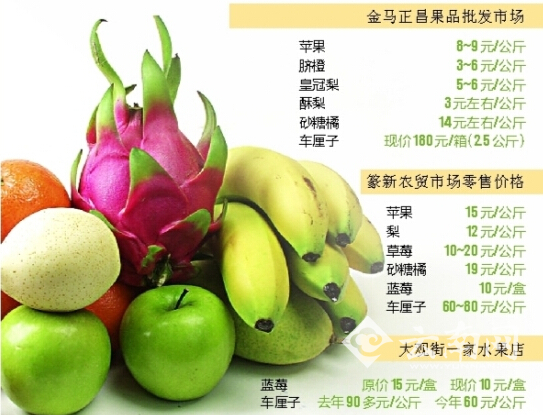 ????在另一家水果店,記者同樣得到了今年藍(lán)莓、車?yán)遄拥氖蹆r(jià)降低的信息,藍(lán)莓由去年20~25元/盒,降為10元/盒,車?yán)遄拥膬r(jià)格也降低了10~20元/公斤。