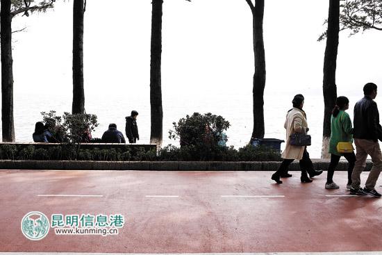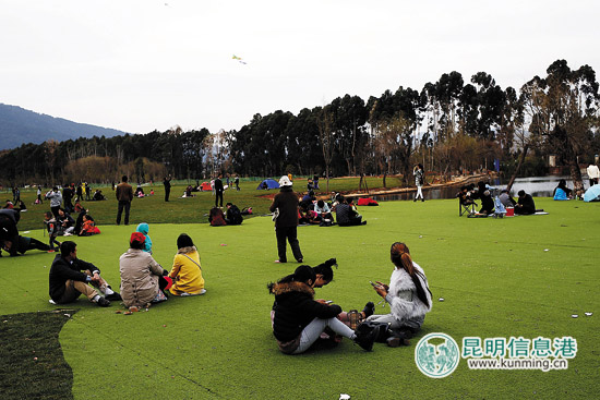 ????昨天,海埂公園內(nèi)游人如織,即便公園里還有一些地區(qū)正在施工,但絲毫不影響游客參觀的熱情。下午3點半,游客依然需要排隊購票進入公園。