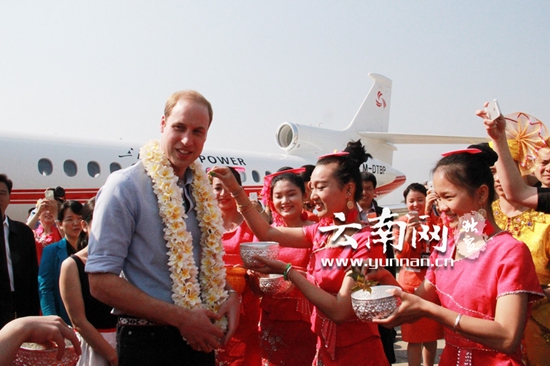 ????3月4日上午11點左右,威廉王子乘坐的專機降落在云南西雙版納嘎灑機場,英國王子的“云南時間”正式啟動。