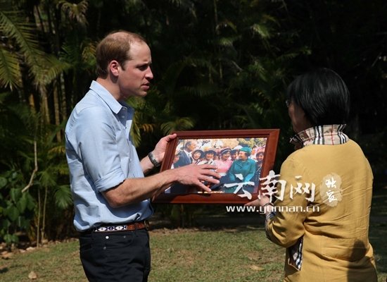 植物園中,威廉王子得到了一份特殊的禮物,祖父祖母29年前訪問云南時的照片。記者黃興能/攝