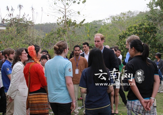 ????之后,在會場外的草坪上,威廉王子與來自中國、美國、印度、巴基斯坦、英國等國家的幾個青年學(xué)生進(jìn)行了近距離交流,這些學(xué)生大都是在西雙版納進(jìn)行環(huán)境保護研究的。簡短的交流現(xiàn)場氣氛融洽,笑聲不斷。
