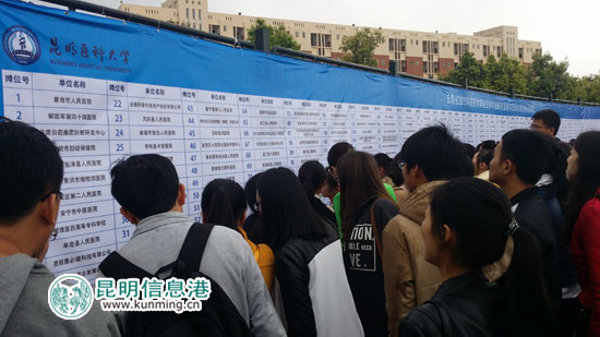 ????此次“雙選會”,是昆明市2015年“千企萬崗進校園”春秋招聘會系列專場中的第3場,也是昆明醫(yī)科大學連續(xù)十六屆舉辦云南省醫(yī)藥類畢業(yè)生專場供需見面會,并已成為云南省醫(yī)藥衛(wèi)生行業(yè)用人單位選拔錄用畢業(yè)生的重要平臺之一。