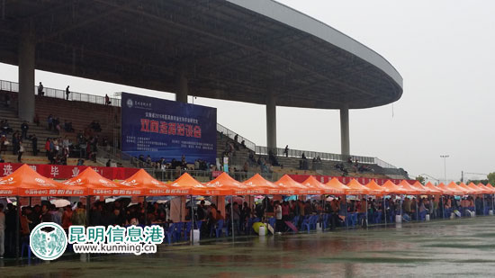 ????昆明信息港訊 記者楊雁 3月25日一大早,盡管雨下的很大,但位于呈貢的昆明醫(yī)科大學足球場四周圍了一整圈招聘企業(yè)的招聘席,絡(luò)繹不絕的高校生打著雨傘、或穿著雨衣涌入招聘會現(xiàn)場求職。當天,由云南省教育廳主辦,云南省大中專畢業(yè)生就業(yè)服務(wù)中心、昆明醫(yī)科大學、昆明市就業(yè)局承辦的“云南省2015年醫(yī)藥類畢業(yè)生和畢業(yè)研究生雙向選擇洽談會”在該校舉行,現(xiàn)場簽約及意向簽約人數(shù)達千余人。