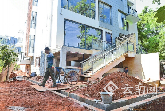????一米,兩米,能不能再挖深一點(diǎn)?你挖地窖,我也要挖地窖!你家的別墅“變胖”了,我家的別墅也要“增肥”……去年以來,昆明市前衛(wèi)西路同德極少墅小區(qū)私搭亂建現(xiàn)象極為嚴(yán)重。執(zhí)法部門接到的各種私搭亂建行為投訴,涉及該小區(qū)20多棟別墅。自去年至今,城管部門下發(fā)限期整改通知書多達(dá)20多份,但仍有業(yè)主頂風(fēng)“作案”。