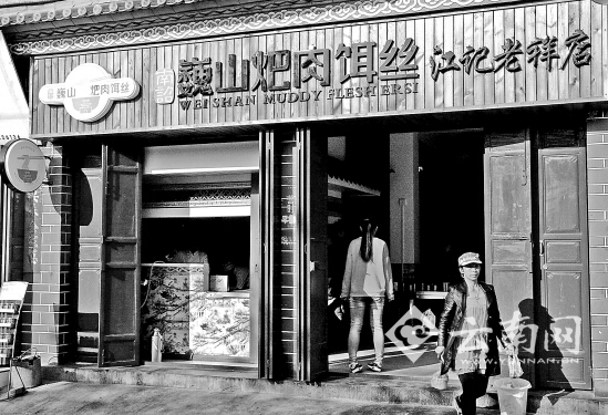 ????4月中旬的一天清晨,記者來(lái)到巍山古城“老王過(guò)江餌絲”店,只見(jiàn)店面特色鮮明,店內(nèi)整潔、清爽,服務(wù)員身著統(tǒng)一的服裝正在忙碌著,客人絡(luò)繹不絕。隨著首批6家粑肉餌絲標(biāo)準(zhǔn)店的改建完成投入使用,巍山縣粑肉餌絲走上了品牌化發(fā)展之路。