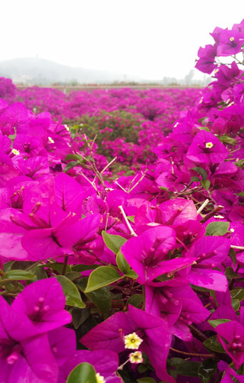 ????錢永康還說,相對于其他地方栽培出來的三角梅而言,宜良栽種的三角梅運(yùn)到省外使用時,適應(yīng)性更強(qiáng)。加之花期長、花色鮮艷等因素,因此三角梅除使用在省內(nèi)外,更多則銷往廣西南寧、重慶、攀枝花、西昌等地。“今年三角梅的花價同比上揚(yáng)了40%左右,市場反映仍供不應(yīng)求。在三角梅花期到來之前,宜良縣還有500萬株葉子花,但最近一個月來的銷售,使得宜良的三角梅存量迅速減少到100萬株以內(nèi),市場需求將進(jìn)一步刺激宜良花農(nóng)栽培三角梅的熱情?!痹谡劦揭肆伎h龍頭的三角梅造型苗基地“為君開”時,錢永康表示,“為君開”繁育的三角梅屬安裝形植物,即可以通過吊運(yùn)的方式進(jìn)行運(yùn)輸和安裝,葉子花塑形成品運(yùn)抵后,可以實(shí)現(xiàn)一夜變花園的美景呈現(xiàn)。同時,“為君開”作為宜良縣種植三角梅造型苗最大的基地,也將進(jìn)一步加強(qiáng)品種繁育,培育盆景式三角梅。