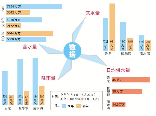 ????據(jù)云龍水庫管理處工作人員介紹,云龍水庫4月22日徑流高達(dá)76萬方,是今年以來的最大單日來水量,同時云龍水庫也迎來2007年向昆明城市供水進(jìn)入旱季以來降雨、來水最多的一年。尤其是4月22日至26日的有效降雨,又恰逢云龍水庫上游雙化水庫4月21日向云龍水庫每日調(diào)水36萬方,因此水庫在確保城市每天供水45萬方的前提下,水位從21日至26日上漲了10厘米,單日最大漲幅4厘米,庫容增加了77.34萬方,這是2009年以來在旱季四月份出現(xiàn)庫容、水位上漲,實為罕見。