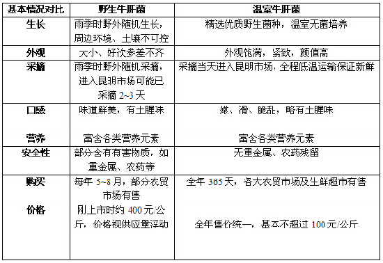 從實際情況來看,兩者都能滿足不同人群的需求,市場潛力十分巨大,并不存在直接的競爭關(guān)系。就市場情況來說,野生牛肝菌價格從幾十到幾百元不等,波動較大,而溫室黑牛肝菌基本上每公斤不足百元,比野生菌更具優(yōu)勢。