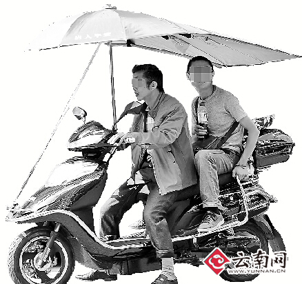 ????昨日小暑,進入盛夏,打傘避暑的市民越來越多。有的電動車裝上了寬大的傘,以避免淋雨或陽光直射。但是,這種遮陽傘對騎車人及周邊過往者有著很強殺傷力。據(jù)統(tǒng)計,2014年昆明市涉及電動自行車事故案件占全市交通事故案件總數(shù)的26%。交警表示,在電動車違法行為中,闖紅燈或搶行、逆行、安裝遮陽傘、超員超載等幾類違法行為最常見。