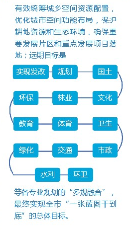 ????《方案》提出,昆明市“多規(guī)合一”的近期目標(biāo)為有效統(tǒng)籌城鄉(xiāng)空間資源配置,優(yōu)化城市空間功能布局,保護(hù)耕地資源和生態(tài)環(huán)境,確保重要發(fā)展片區(qū)和重點(diǎn)發(fā)展項(xiàng)目落地。遠(yuǎn)期目標(biāo)為實(shí)現(xiàn)發(fā)改、規(guī)劃、國(guó)土、環(huán)保、林業(yè)、文化、教育、體育、衛(wèi)生、綠化、交通、市政、水利、環(huán)衛(wèi)等各專業(yè)規(guī)劃的“多規(guī)融合”,最終實(shí)現(xiàn)全市“一張藍(lán)圖干到底”。
