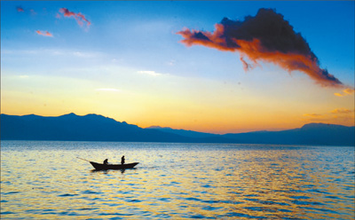 夕陽下的洱海。陳小鐵攝(人民視覺)