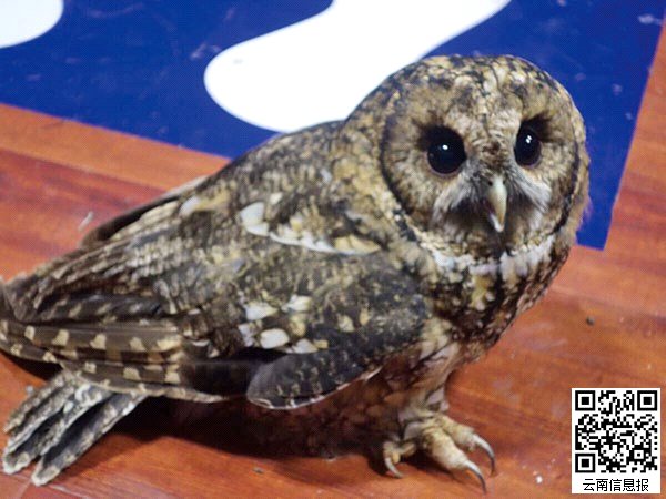 ????昨日凌晨,呈貢金果農(nóng)莊工作人員遇到了一位“稀客”。一只體形很小的貓頭鷹鉆進(jìn)了辦公室,怎么也趕不走。呈貢區(qū)森林公安局的民警猜測這個小家伙可能是與親鳥失散了,隨后將其送到云南野生動物收容拯救中心。