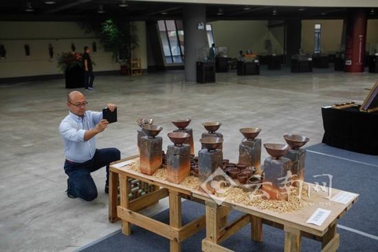 ????200多件風格各異的陶藝精品吸引了眾多陶藝愛好者駐足觀看。柴燒起源于中國,流傳到日本、海外。是一種古老的技藝,成敗取決于土、火、柴、窯之間的關系,環(huán)環(huán)相扣,是多次燒成實驗調整所獲得的心得。柴燒壺不施釉,體表色澤純由土胎、火候、木灰共相作成?!斑@是上天賜予的禮物”國內著名陶藝家呂竹玉說。