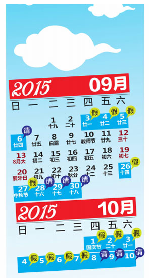 ????專家表示,因2015年中秋節(jié)和國慶節(jié)相鄰近,如果中秋節(jié)在9月28日補假,國慶節(jié)后10月10日、11日(周六、日)就都需上班,為避免大家連上9天班,中秋節(jié)的補假放在了國慶節(jié)一起安排,國慶節(jié)后僅10月10日(周六)上班,公民休假總天數(shù)并未減少。