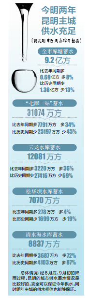 ????今年主汛期已過,昆明的雨還在嘩嘩地下。那么昆明目前蓄水情況如何?能否保證下一季度乃至明年汛前供水?