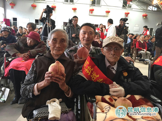 ????昆明信息港訊 記者王黎媛 9月19日,民盟云南省委、云南省青聯(lián)、云南知行合一公益團(tuán)隊(duì)在昆明知青老年公寓舉行“老兵不朽——慰問(wèn)在滇抗戰(zhàn)老兵公益活動(dòng)”,大家為抗戰(zhàn)英雄和老人們表演了豐富多彩的文藝節(jié)目,新知集團(tuán)出品的李勇雪桃現(xiàn)場(chǎng)敬獻(xiàn)抗戰(zhàn)英雄,獲得一致好評(píng)。