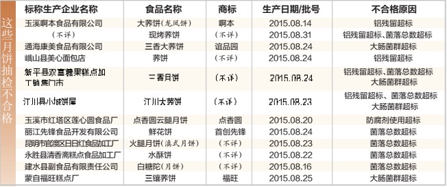 ????據(jù)省食藥監(jiān)局負(fù)責(zé)人介紹,此次抽檢覆蓋曲靖、玉溪、大理、麗江、紅河、文山、普洱、版納、楚雄、保山、德宏、昭通、昆明等13個州(市)和滇中產(chǎn)業(yè)新區(qū),重點檢測了月餅中鉛、苯甲酸及其鈉鹽、亞硝酸鹽、糖精鈉、甜蜜素、安賽蜜、鋁的殘留量、防腐劑、菌落總數(shù)、大腸菌群、致病菌、霉菌等指標(biāo)。