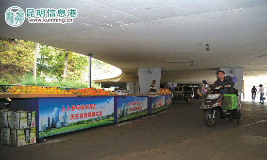 ????昆明惠群貿(mào)易有限公司管理西站立交橋下引攤?cè)胧械牧_先生說:“我們每天都安排管理人員對該市場進(jìn)行管理,安排了保潔人員打掃衛(wèi)生,有保安管理市場秩序,在上、下班高峰期,還有專門的管理人員負(fù)責(zé)疏導(dǎo)立交橋下的交通?!绷_先生說,由于西站立交橋下平時(shí)人流量車流量都比較大,給商販設(shè)置固定的攤位有利于規(guī)范秩序。(都市時(shí)報(bào) 記者陳蕾)