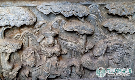 雕刻在石頭上的民俗故事場景 首席攝影記者林堅/攝