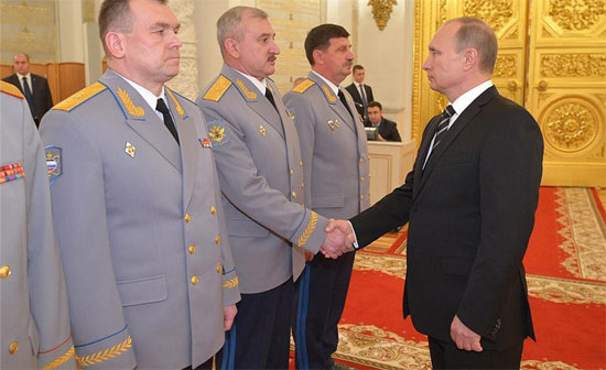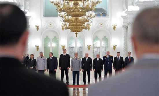 當(dāng)?shù)貢r間10月20日,普京在克里姆林宮喬治廳出席俄軍高級將領(lǐng)晉職晉銜儀式