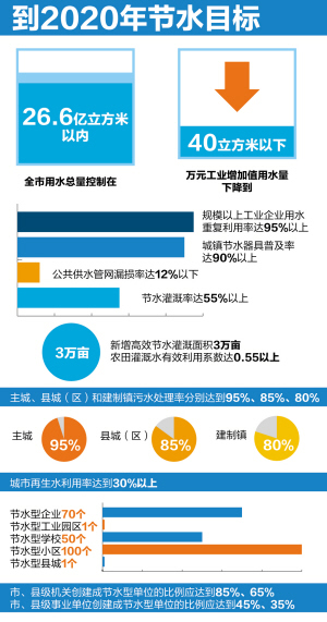 ????按照省、市、縣控制區(qū)域70%以上取用水總量的要求,確定市、縣兩級重點取用水戶監(jiān)控管理名錄,推進水資源監(jiān)控能力建設(shè);限制高耗水工業(yè)項目和服務(wù)業(yè)發(fā)展,強化洗浴、游泳、水上娛樂、洗車等特種行業(yè)的用水節(jié)水監(jiān)管。對使用年限超過50年和材質(zhì)落后的供水管網(wǎng)進行更新改造,不斷降低管網(wǎng)漏損率。在完成水量平衡測試工作的基礎(chǔ)上,進一步推進節(jié)水型公共機構(gòu)、節(jié)水型企業(yè)、節(jié)水小區(qū)的創(chuàng)建工作。