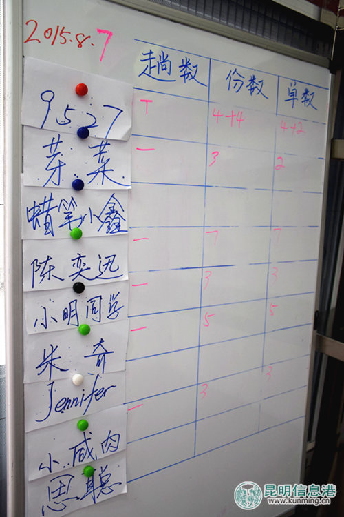 嘿果的小白板上記錄著員工們每天的工作量。
