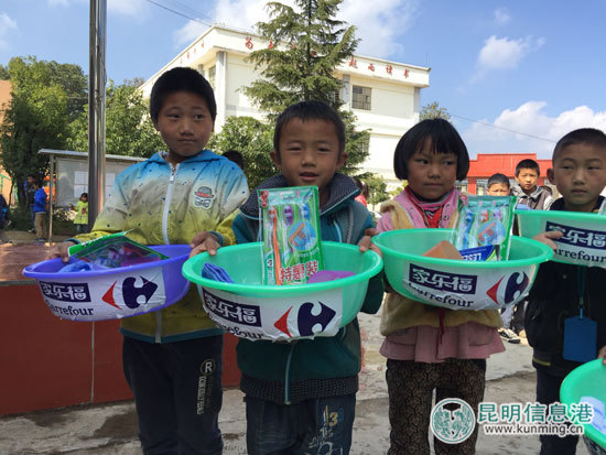 ????昆明信息港訊 記者張子源 11月12日,昆明家樂(lè)福“小善大愛(ài)——尋甸撒米洛金秋行”走進(jìn)尋甸縣回族彝族自治縣河口鎮(zhèn)撒米落寄宿制完小,為學(xué)校400多名師生帶來(lái)一批價(jià)值2萬(wàn)余元的生活用品和文體用品。