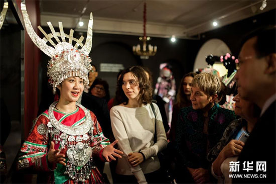 ????當(dāng)日,“霓裳銀裝”貴州少數(shù)民族服飾展在莫斯科開幕。展覽主要展出貴州少數(shù)民族服飾、裝飾工藝品,配以照片和影像,集中展現(xiàn)貴州少數(shù)民族勤勞淳樸的生活及神秘深厚的文化古風(fēng)。