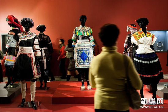 人們?cè)凇澳奚雁y裝”貴州少數(shù)民族服飾展上參觀 葉甫蓋尼·西尼岑/攝