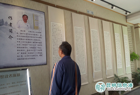 ????昆明信息港訊 記者薛江濤 王位 11月17日,姜文清書法展在昆明市圖書館藝術(shù)館開幕。展覽將持續(xù)至本月30日,市民可前往免費(fèi)參觀。