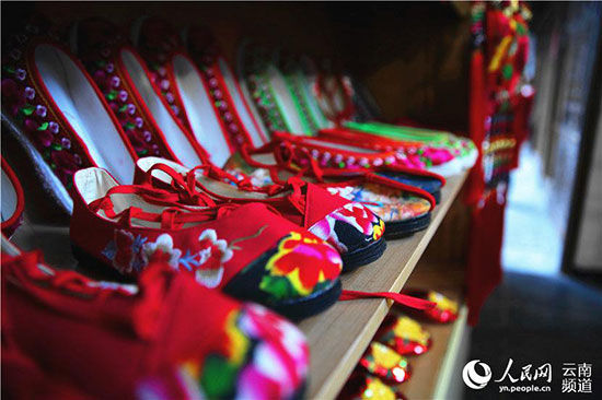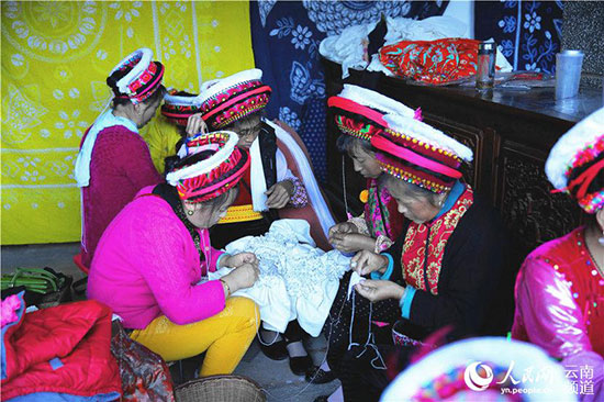 大理白族婦女在進行刺繡 記者薛丹/攝