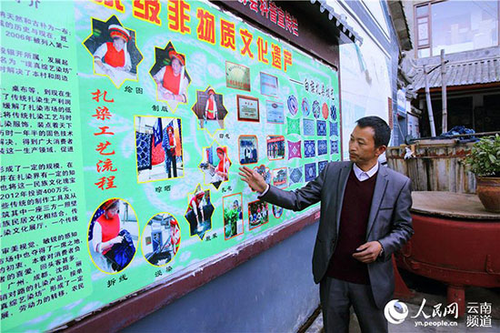 白族扎染技藝傳承人段樹坤介紹扎染歷史 記者薛丹/攝
