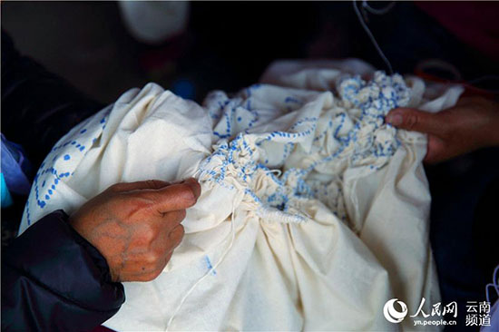 ????“通過反復的浸染,每浸一次顏色就深一層,也就是所謂的‘青出于藍’。浸染到一定程度后,取出晾干,拆去纈結,就有了藍底白花的圖案花紋了?!?段樹坤說。制作好的扎染布藝圖案多以圓點,不規(guī)則圖形以及其他簡單的幾何圖形組成,頗具藝術效果,還可以根據各種圖案的扎染布制作衣裙、圍腰、床單、窗簾、桌椅罩等生活用品。2006年白族扎染技藝被文化部列入國家級非物質文化遺產。(人民網 記者薛丹)