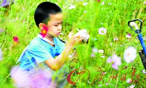 ????在花田里照相的小朋友。