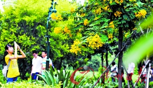 ????游客在公園里拍照。