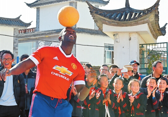 ????昨日,作為“紅粉筆鄉(xiāng)村教育計劃”公益活動的志愿者,前曼聯(lián)“黑風雙煞”之一的球員德懷特·約克來到大理白族自治州大理市雙廊鎮(zhèn)長育完小,帶領(lǐng)孩子們一起踢足球,交流球技。