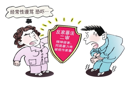 ????昨日,全國人大常委會開始審議反家庭暴力法二審稿草案,精神暴力首次納入其中。