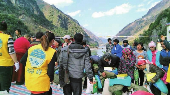 ????夕陽西下,怒江傈僳族自治州福貢縣子里甲鄉(xiāng)金秀谷村的村民們,每人心滿意足地拖著三四麻袋的物資,準(zhǔn)備回家了。12月25日,伴隨著村民們的一聲聲感謝,來自昆明,由中國(guó)無障礙協(xié)會(huì)云南分會(huì)主辦的“冬日怒江捐贈(zèng)活動(dòng)” 順利完成。