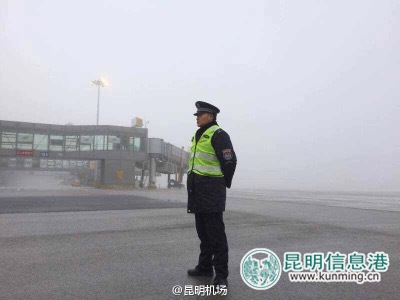 大霧中的長水機(jī)場(chǎng)。